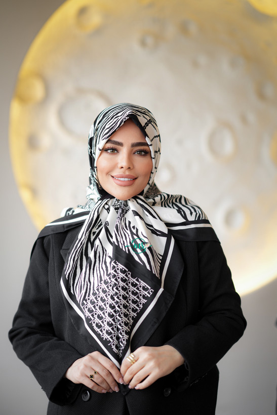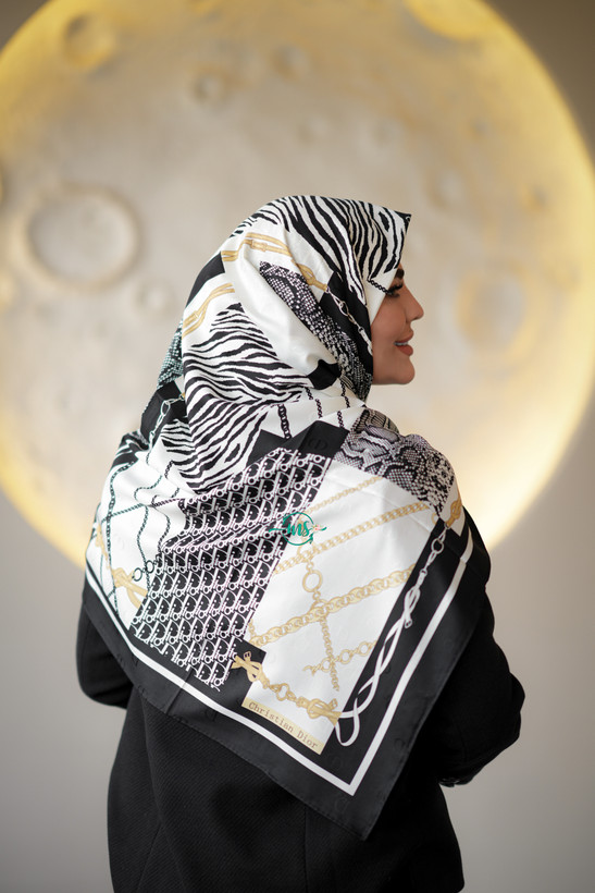 روسری ابریشم ژاکارد طرح زبرا رنگ سفید مشکی