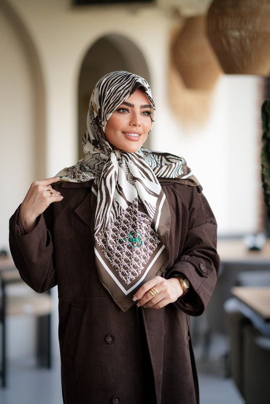 روسری ابریشم ژاکارد طرح زبرا رنگ قهوه ای
