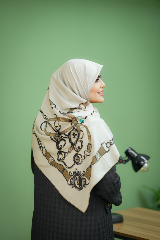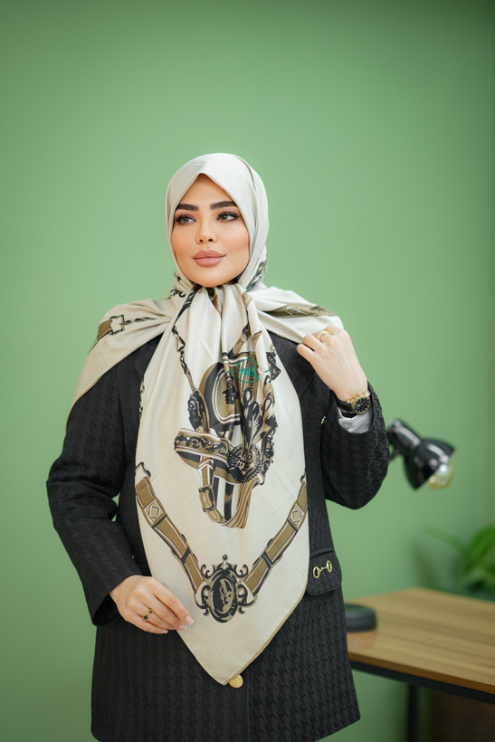 روسری طرح هرمس کمربندی وسط ساده کرم قهوه ای