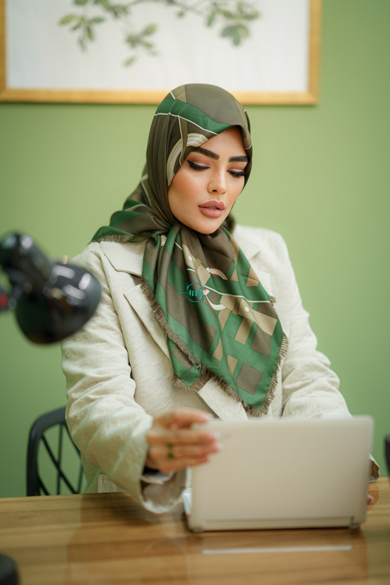 روسری ابریشم طرح کمربندی هرمس قهوه ای سبز