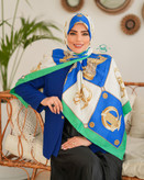 روسری ژاکارد طرح اسب قاب قابی آبی کاربنی
