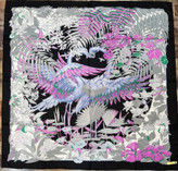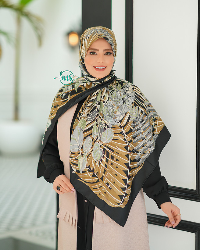 روسری ابریشم کجراه طرح فلامینگو رنگ مشکی طوسی