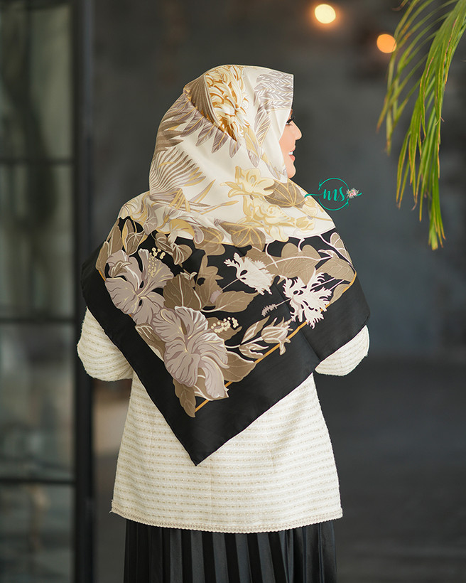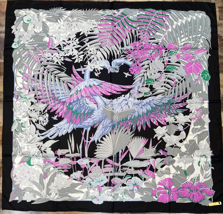 روسری ژاکارد ابریشم کجراه فلامینگو رنگ سرمه ای