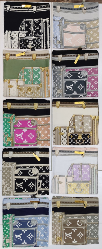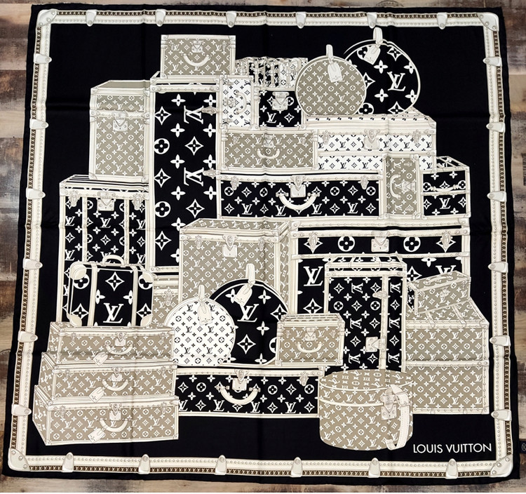 روسری ابریشم کجراه طرح ال وی کرم قهوه ای