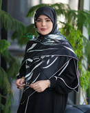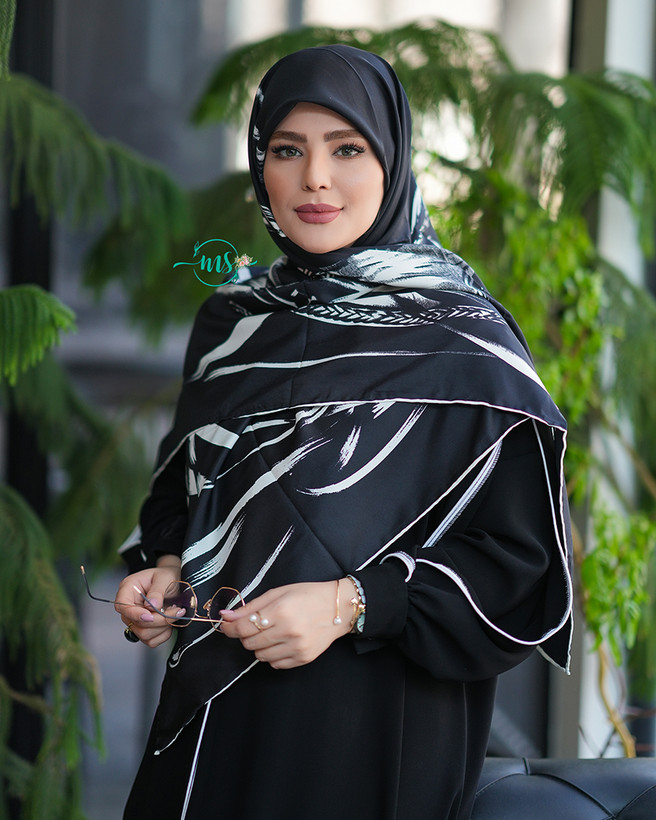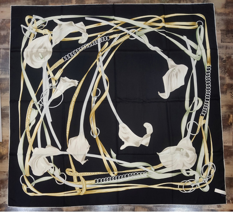 روسری ابریشم کجراه طرح گل شیپوری سفید مشکی