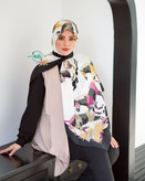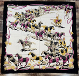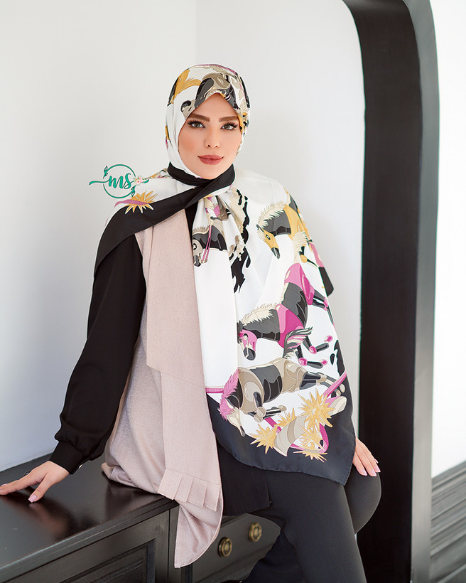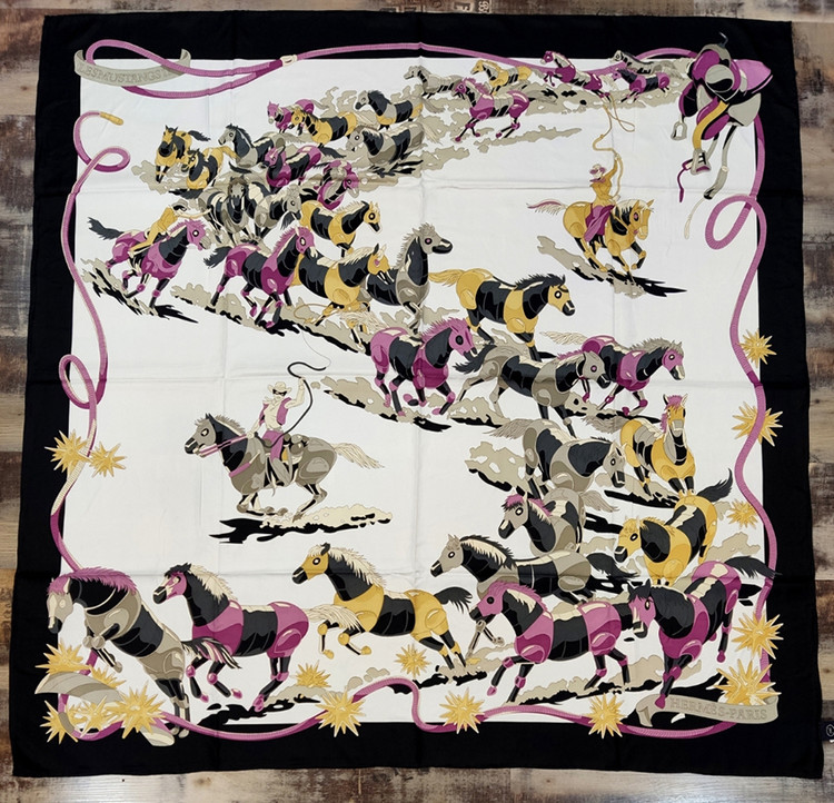 روسری ابریشم کجراه طرح کابوی کرم مشکی