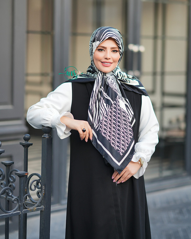 روسری ابریشم ژاکارد طرح پلنگی مشکی