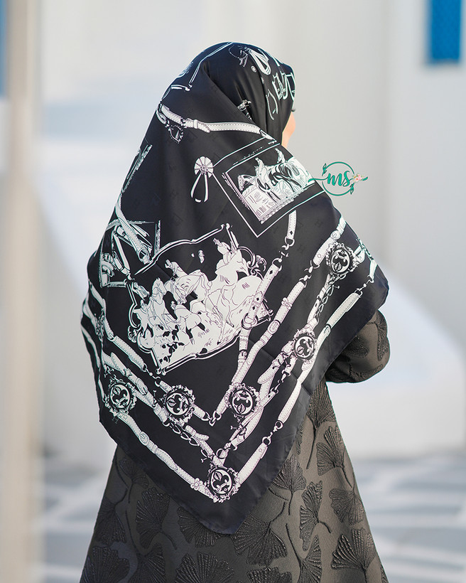 روسری ابریشم ژاکارد طرح قاب مشکی