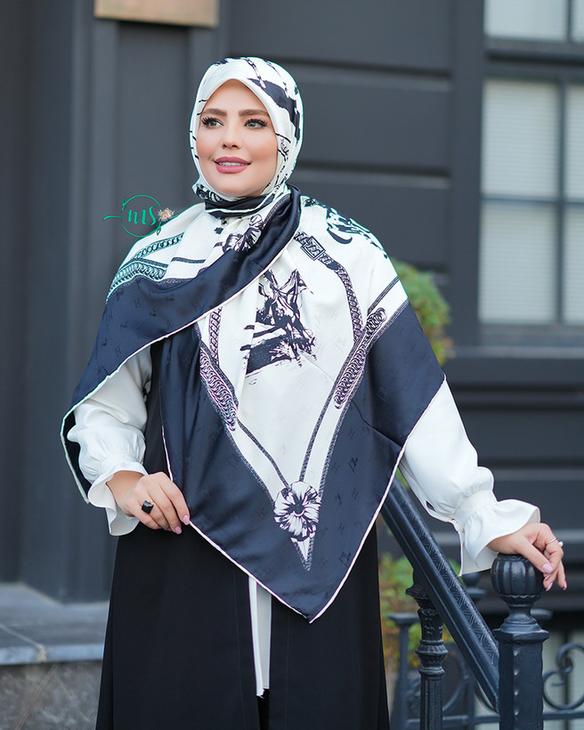 روسری ابریشم ژاکارد طرح فرانسوا مشکی