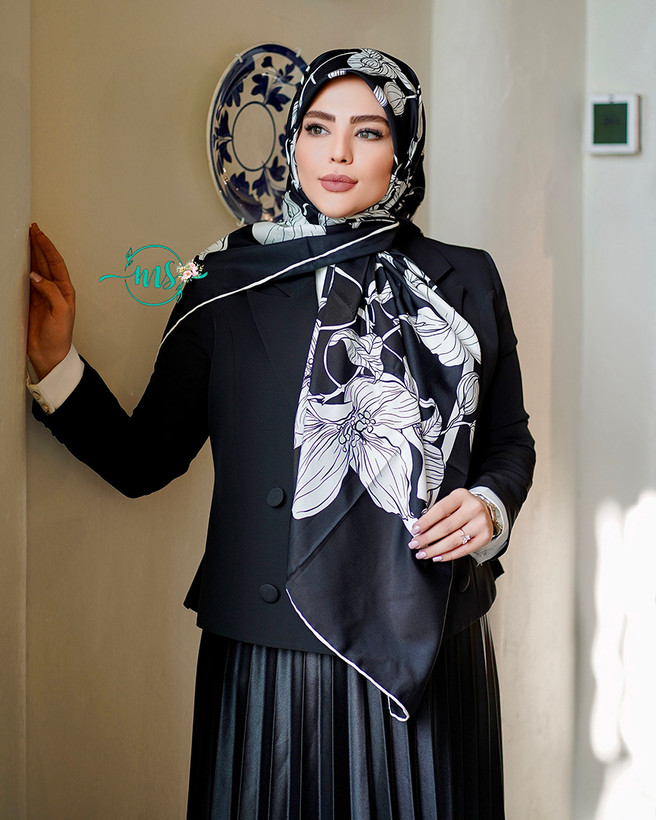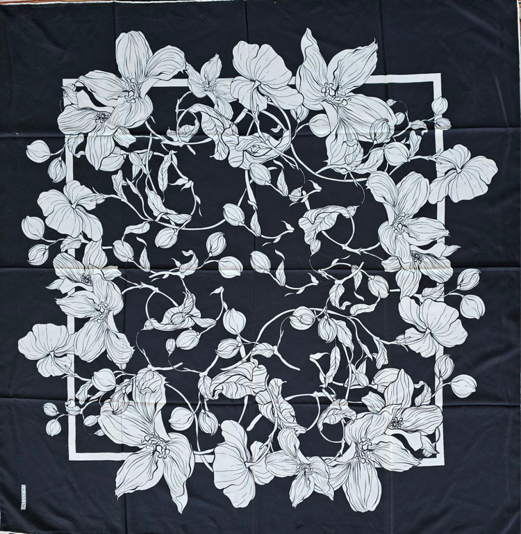 روسری ابریشم کجراه طرح گل مشکی