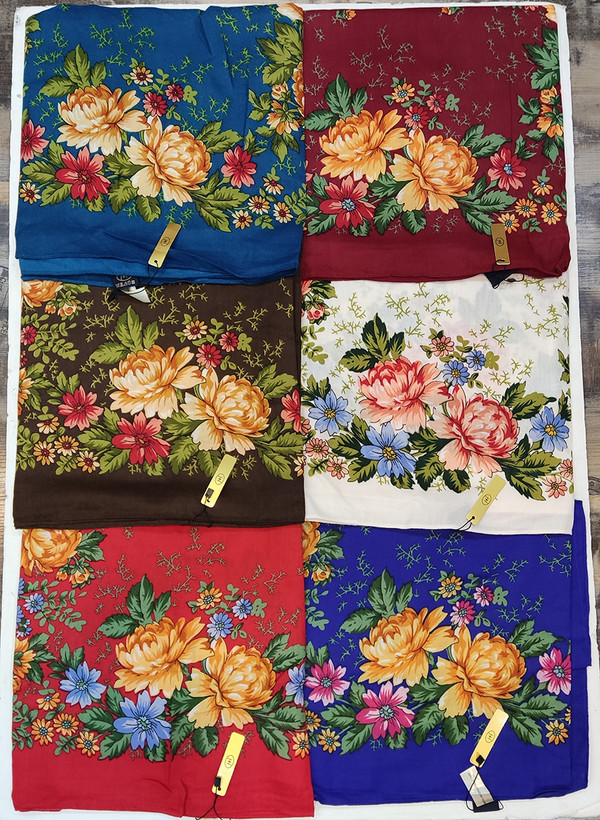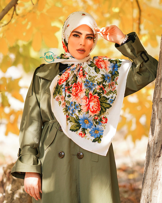 روسری کشمیر پاییزه طرح گل درشت شیری