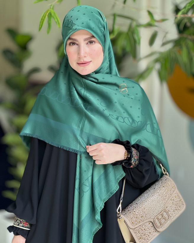 روسری نخ ابریشم ژاکارد طرح گوچی سبز طلایی