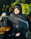 روسری نخ ابریشم ژاکارد طرح شنل مشکی نقره ای