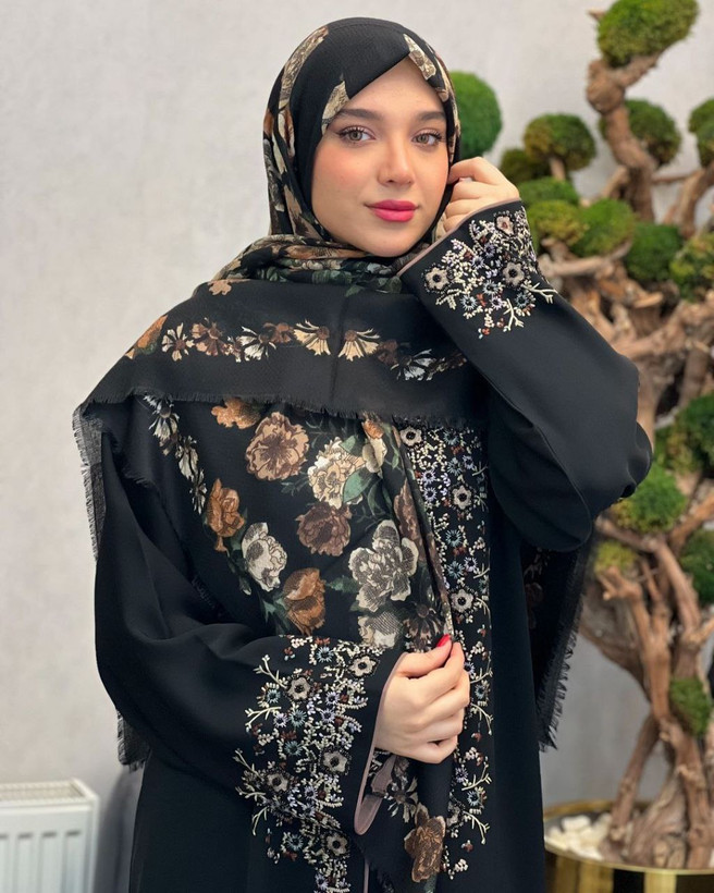روسری سیا اسکارف طرح مک کویین مشکی قهوه ای