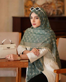 روسری کشمیر حاشیه لمه طرح LV سبز