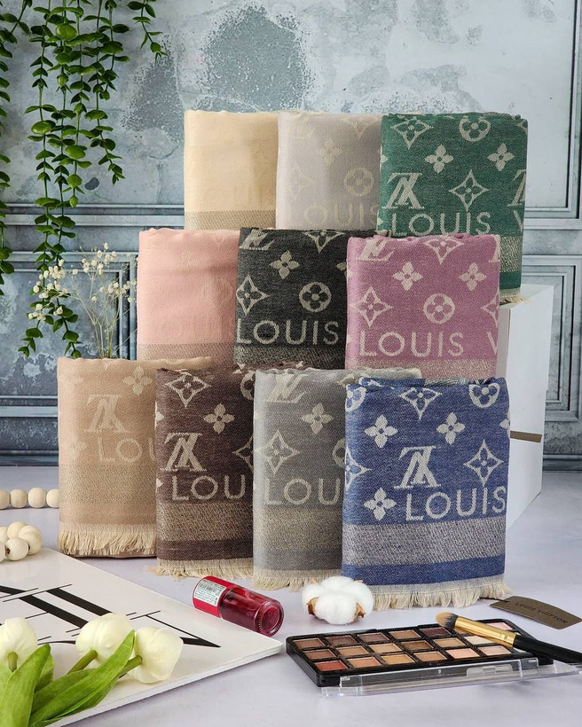 روسری کشمیر حاشیه لمه طرح LV طوسی تیره و روشن