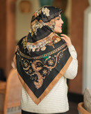 روسری کشمیر طرح سینیوریتا مشکی طلایی
