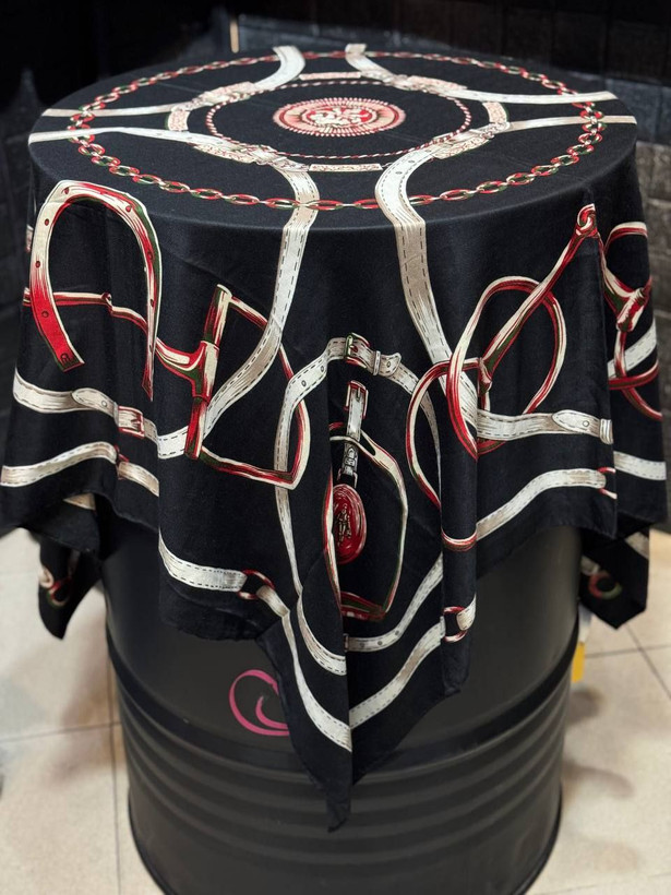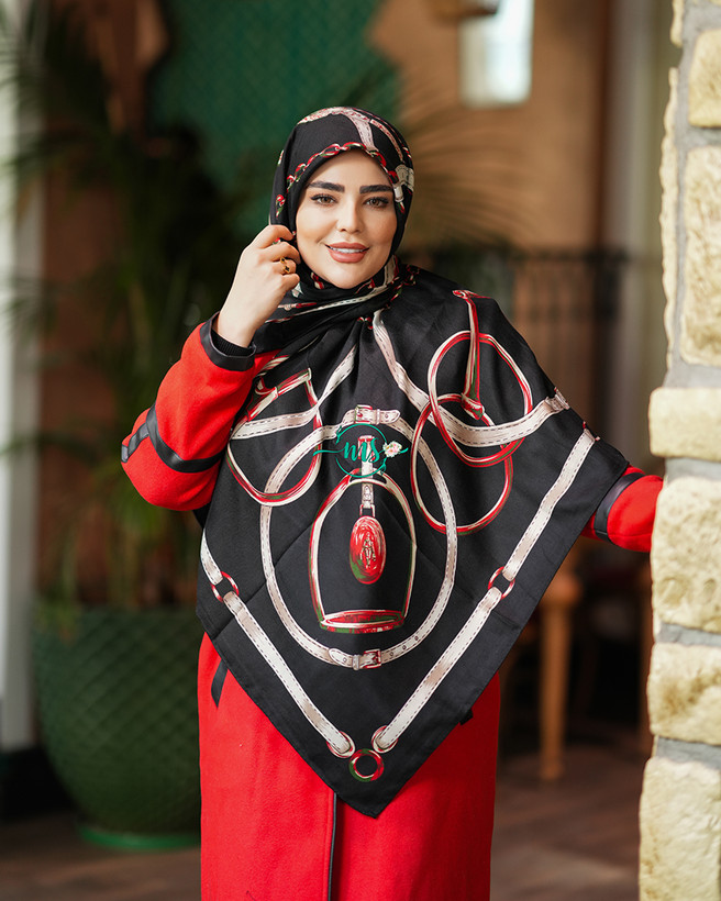 روسری کشمیر طرح کمربندی مشکی کرم قرمز