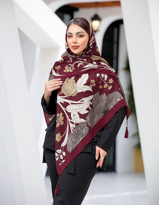 روسری سیا اسکارف پاییزه طرح گل درشت زرشکی
