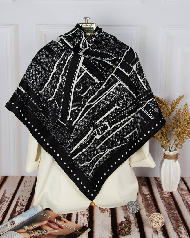روسری ابریشم ژاکارد طرح لویی وی سفید مشکی