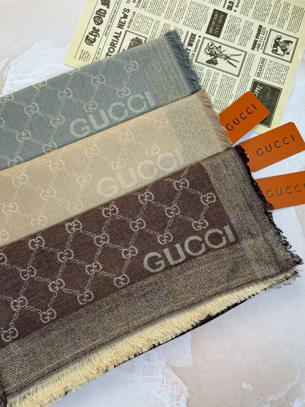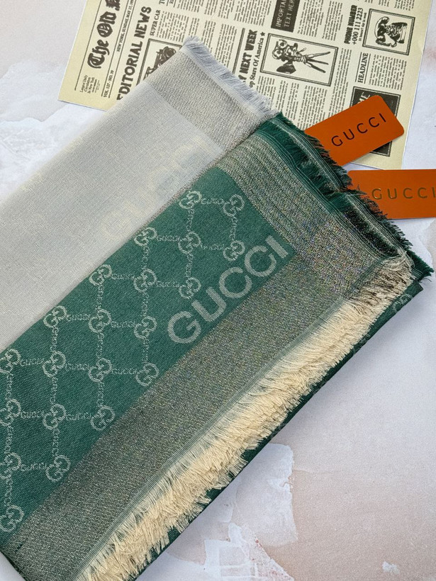 روسری کشمیر حاشیه لمه طرح GUCCI طوسی کمرنگ و پررنگ