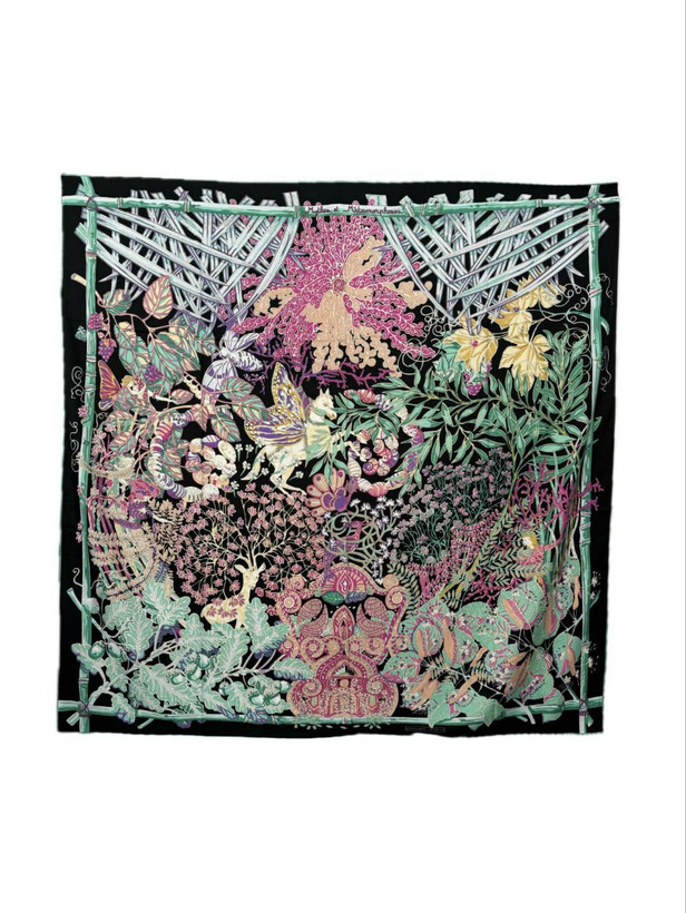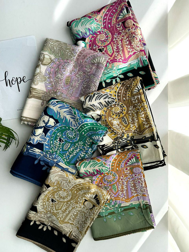 روسری ابریشم ژاکارد طرح جنگل بارانی صورتی پاستلی