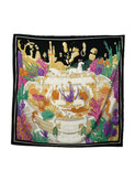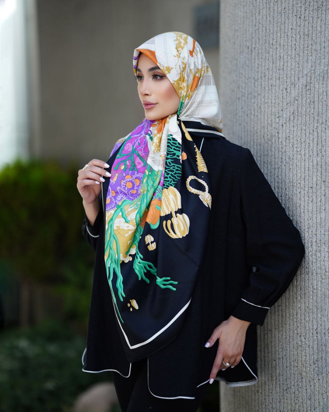 روسری ابریشم ژاکارد طرح آتن مشکی سرخابی