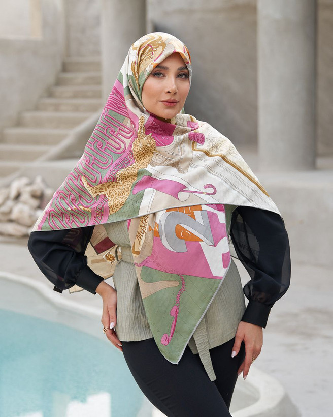 روسری ابریشم ژاکارد طرح اسرارمیز هرمس سبز