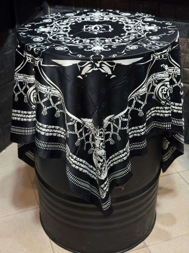 روسری ابریشم ژاکارد طرح دیور پاپیون مشکی سفید