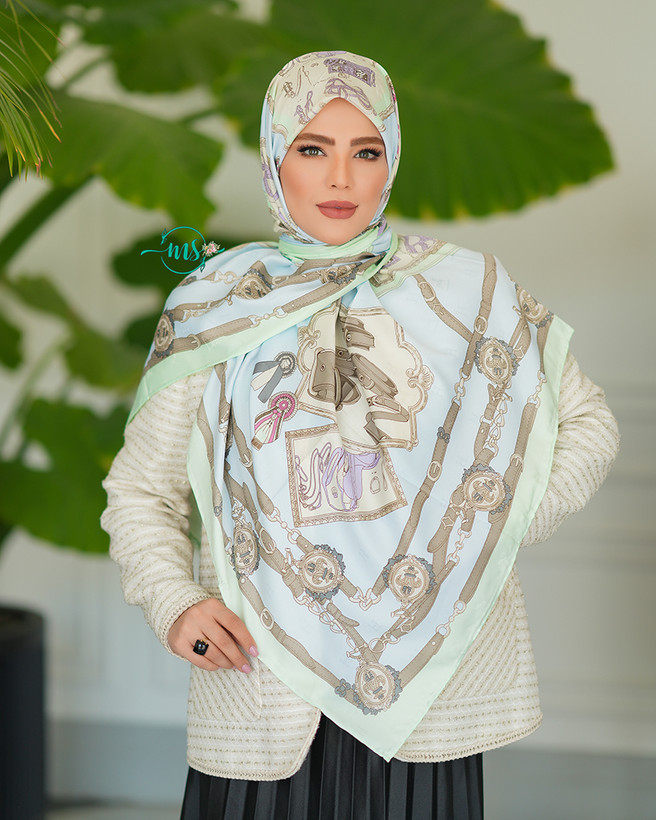 روسری ابریشم ژاکارد طرح قاب پاستلی