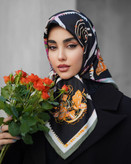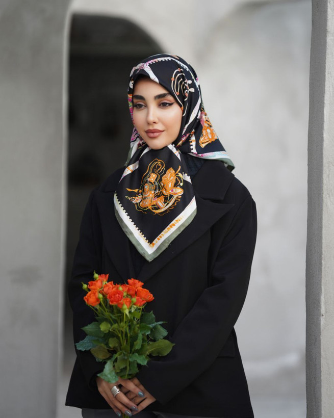 روسری قواره 90 طرح هرمس قاب قابی مشکی سبز
