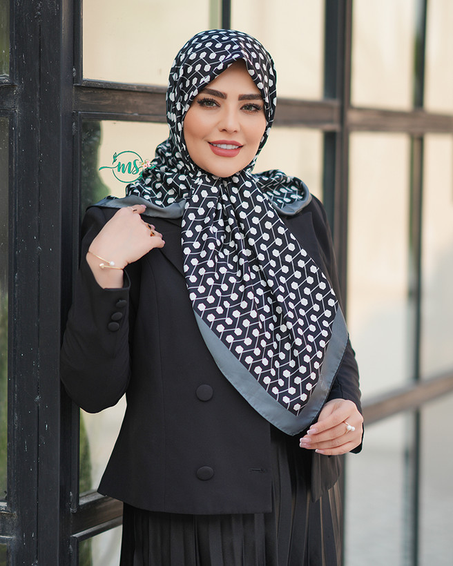 روسری ابریشم ژاکارد طرح والنتینو رنگ مشکی طوسی