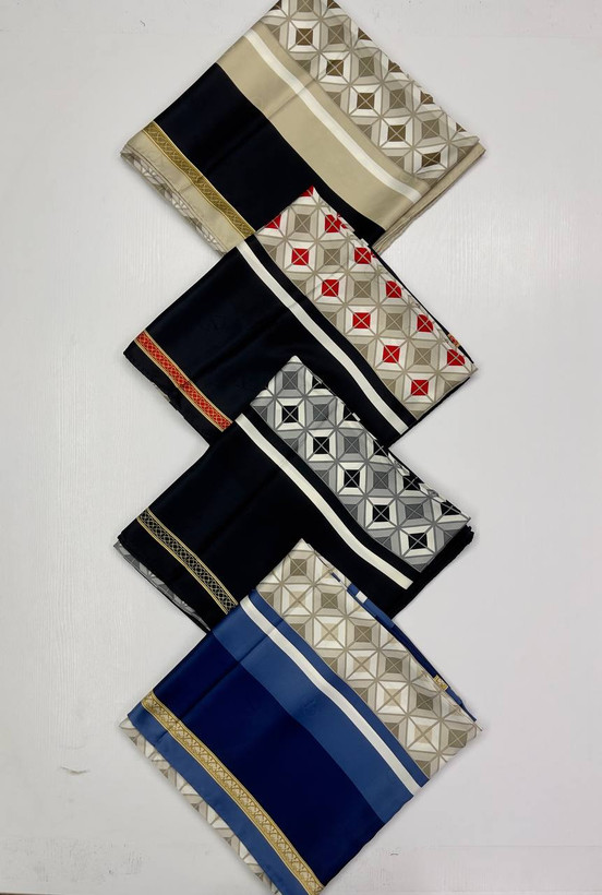 روسری ابریشم ژاکارد طرح والنتینو مشکی کرم