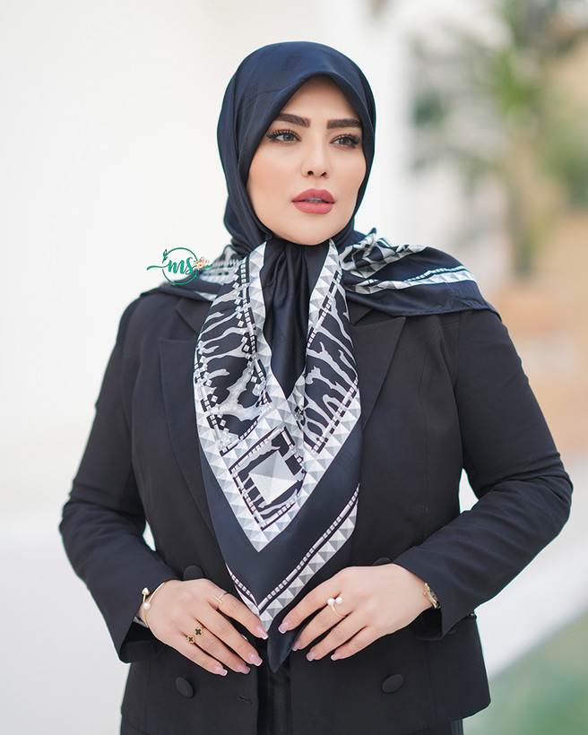 روسری ابریشم ژاکارد طرح حاشیه دار جیوانجی مشکی طوسی