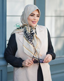 روسری ابریشم ژاکارد طرح حاشیه دار جیوانجی کرم