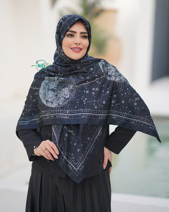 روسری ابریشم ژاکارد دیور طرح کهکشان مشکی طوسی