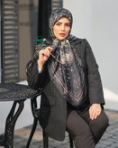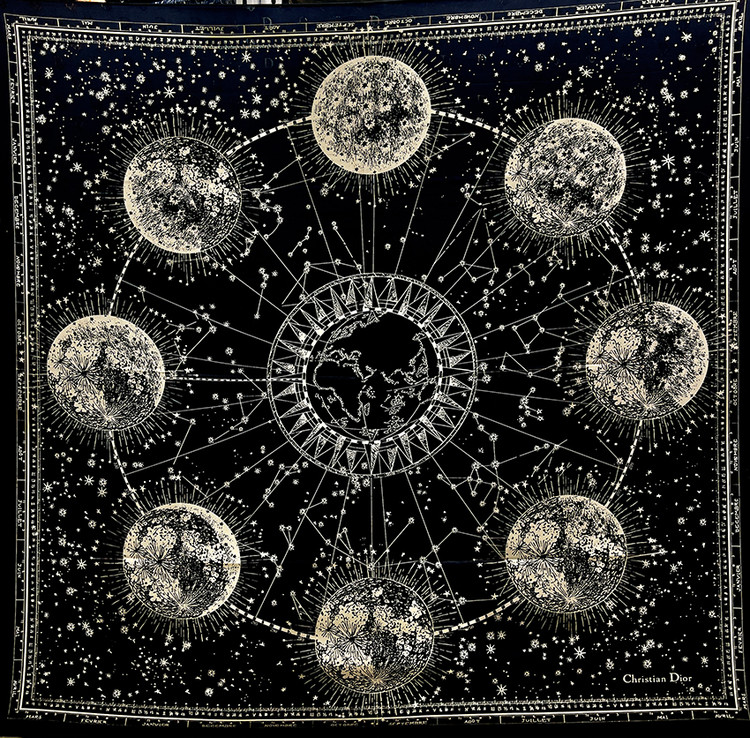 روسری ابریشم ژاکارد دیور طرح کهکشان مشکی کرم تیره