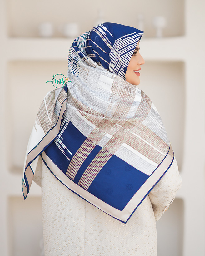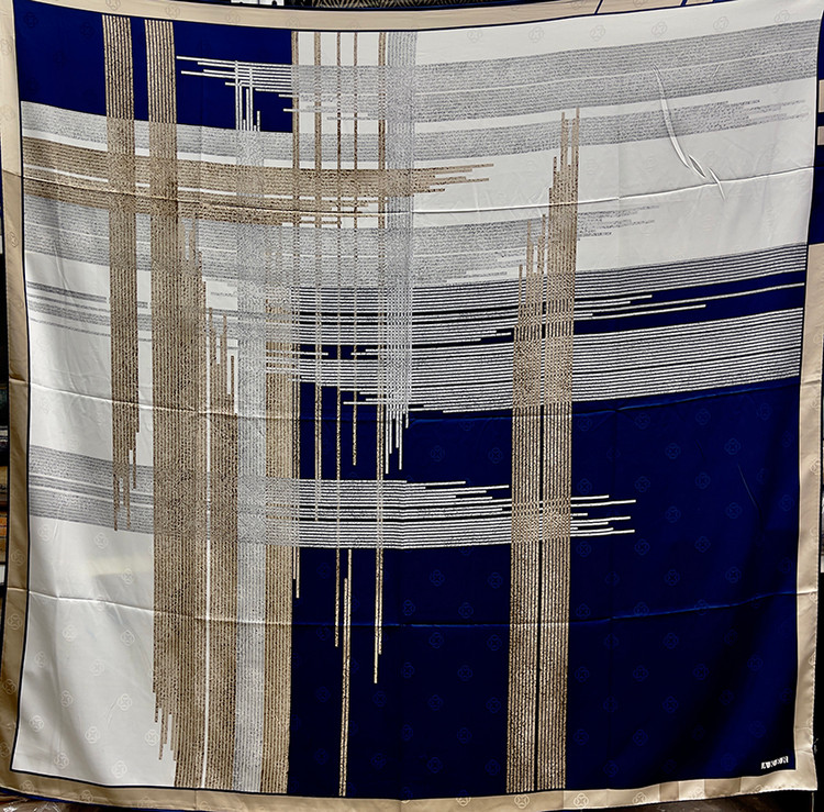 روسری ابریشم ژاکارد اکر طرح خطی رنگ سرمه ای