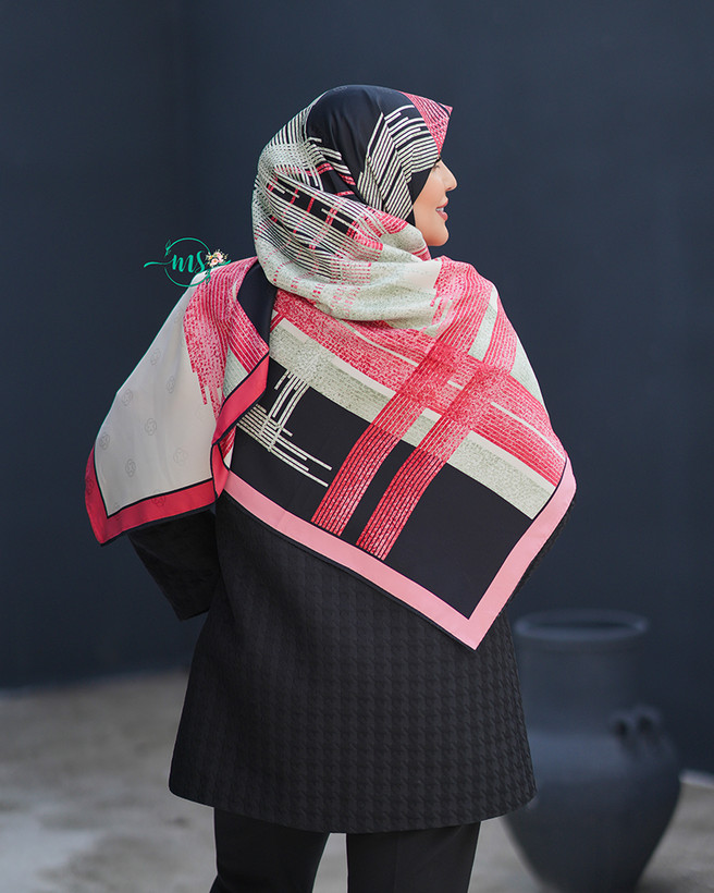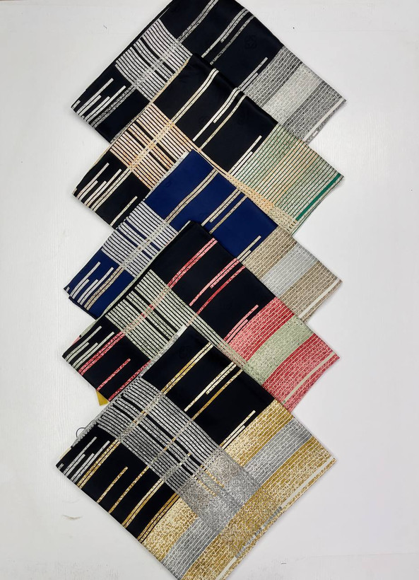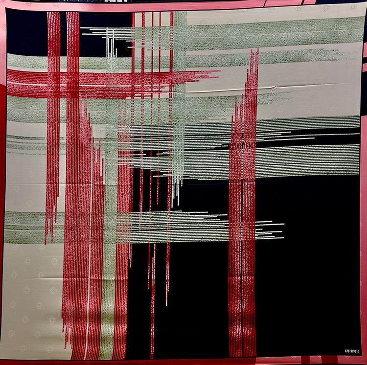 روسری ابریشم ژاکارد اکر طرح خطی رنگ مشکی قرمز