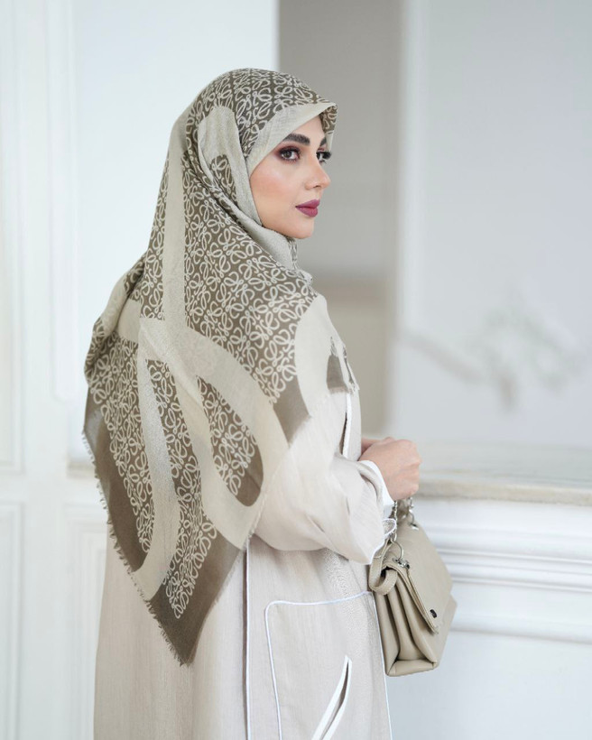 روسری نخ یونیک طرح مارک پروانه ای نسکافه ای