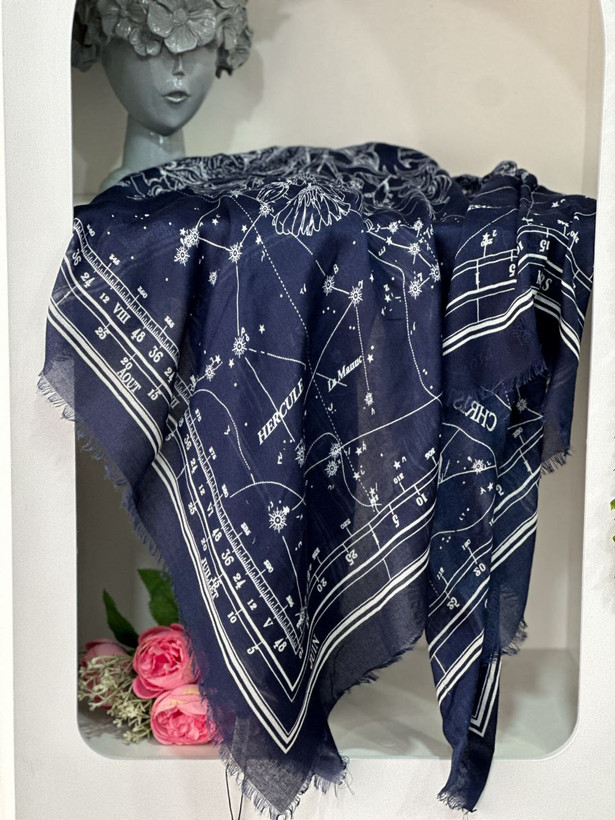 روسری نخ یونیک طرح کهکشانی رنگ سرمه ای سفید