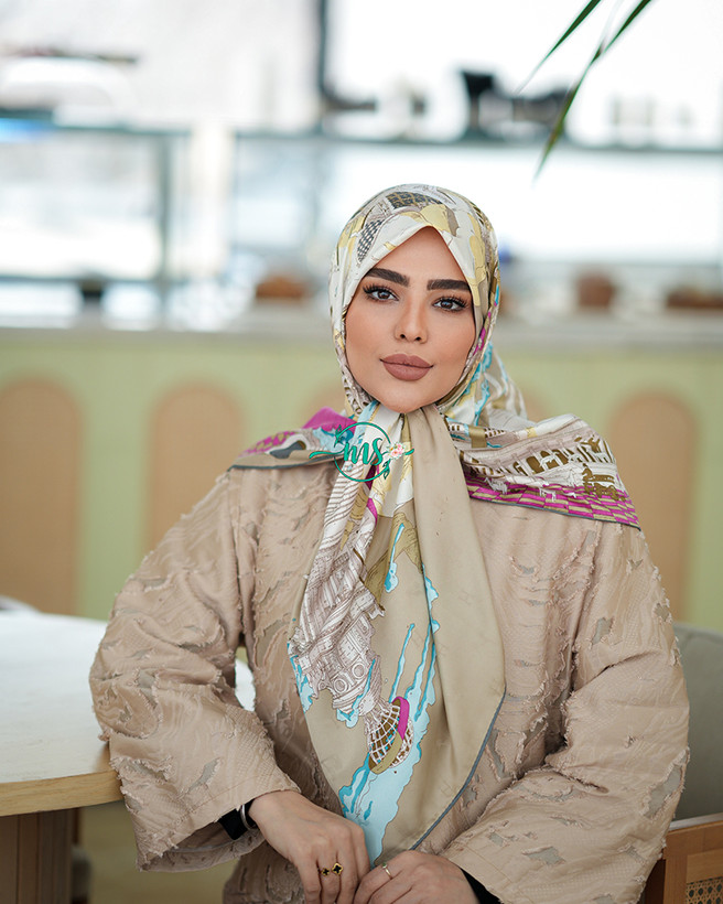 روسری ابریشم ژاکارد طرح تروا کرم نسکافه ای