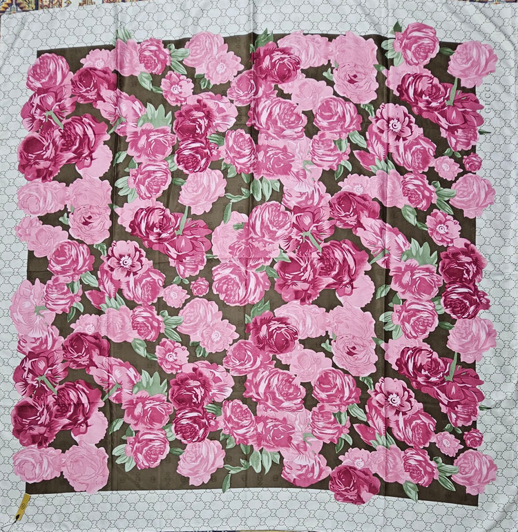 روسری ابریشم ژاکارد طرح گل سرخابی