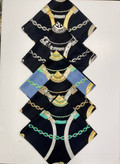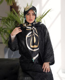 روسری ابریشم ژاکارد طرح کمربندی مشکی سبز