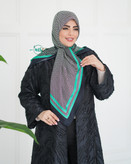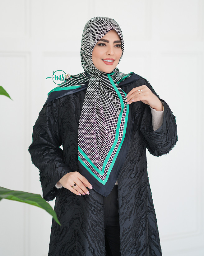 روسری ابریشم ژاکارد طرح باربری مربع مشکی سبز
