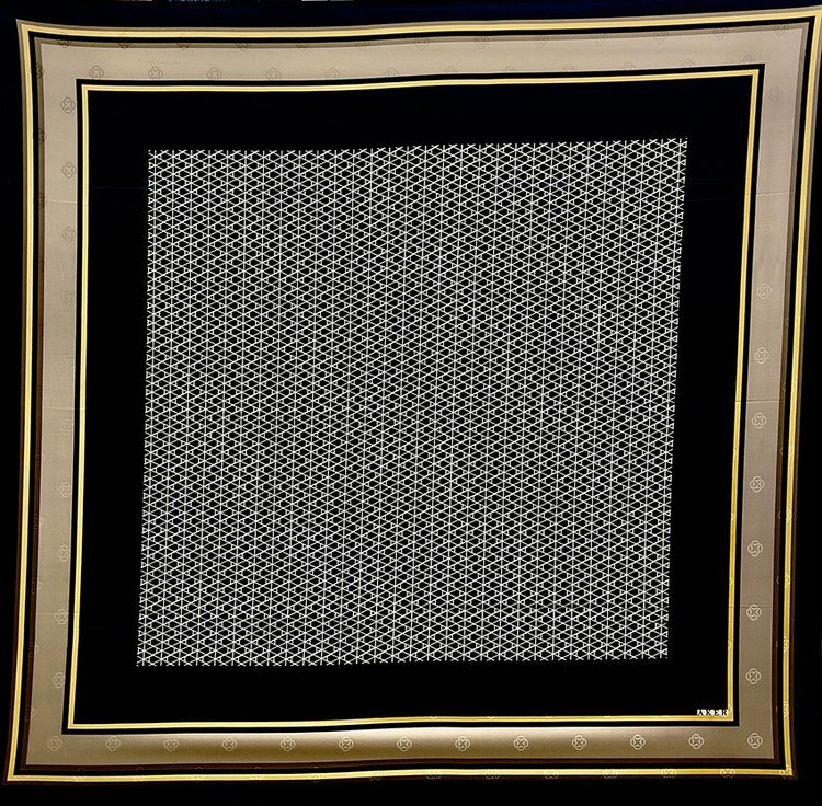 روسری ابریشم ژاکارد طرح مثلثی سرمه ای