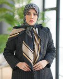 روسری ابریشم ژاکارد طرح مثلثی مشکی شکلاتی