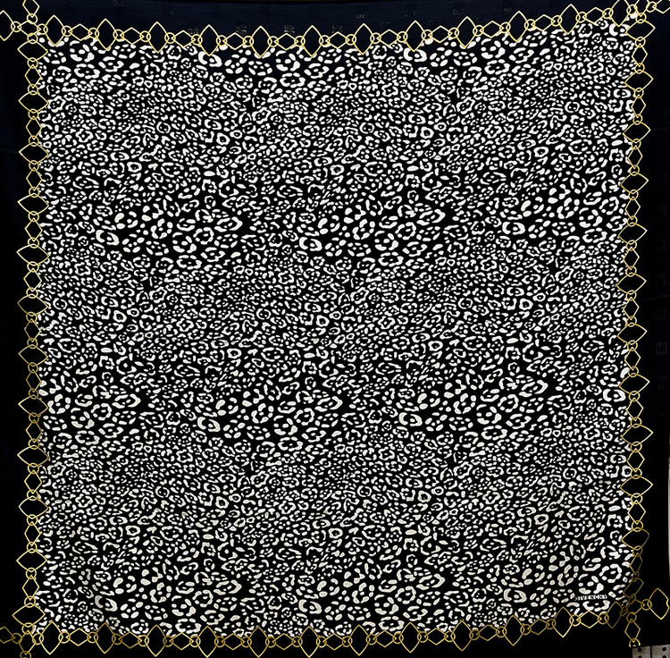 روسری ابریشم ژاکارد طرح جیوانجی پلنگی سفید مشکی طوسی
