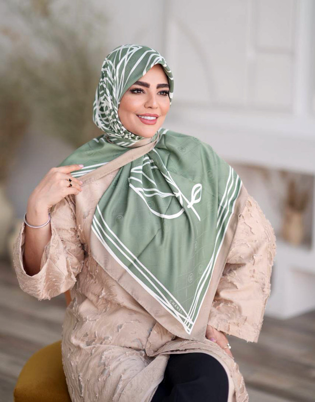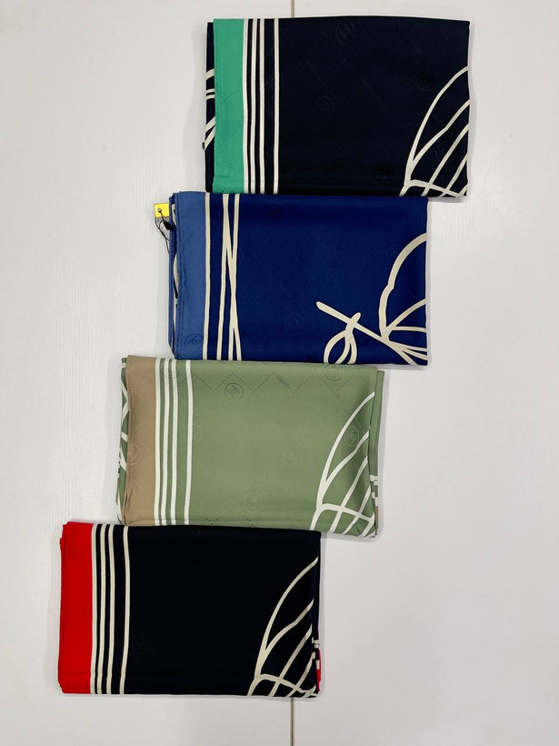 روسری ابریشم ژاکارد طرح شنل گل خط خطی سبز