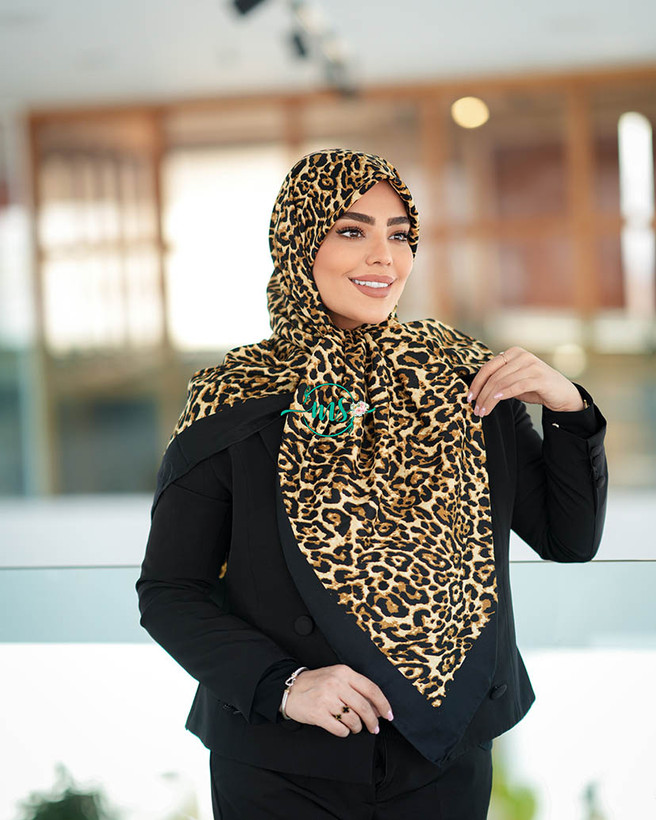 روسری ابریشم کجراه پلنگی حاشیه مشکی